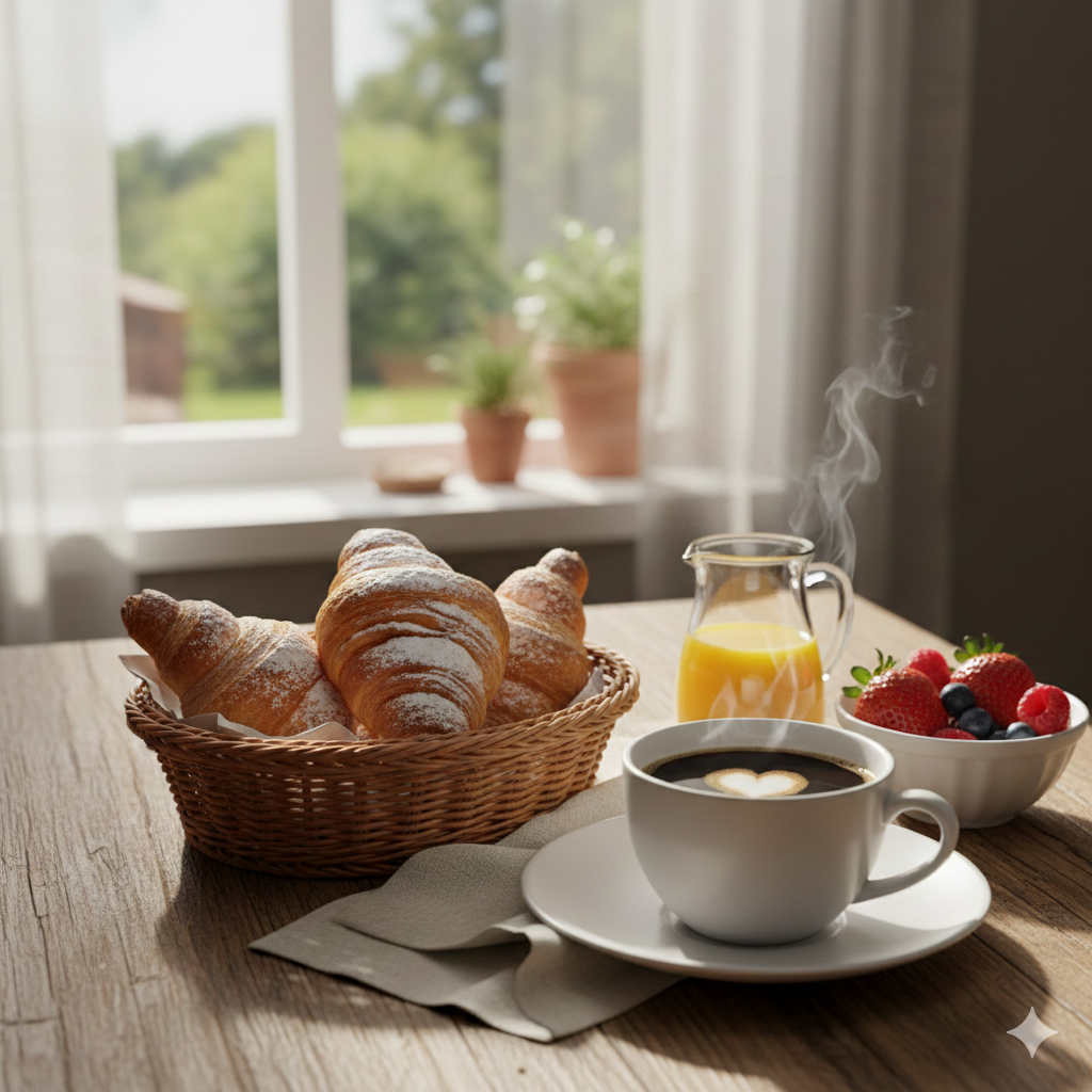 Si vous ne souhaitez pas passer la totalité de votre séjour en cuisine, nous vous proposons différents petits déjeuners ou paniers à prix raisonnables à commander. Petit déjeuner classique ou copieux ou notre panier courses. Chacun de nos assortiments est réalisé avec soin. Ils vous sont servis dès votre arrivée, même tardive, sans que vous ayez à vous déplacer si vous réservez ce service à l'avance.