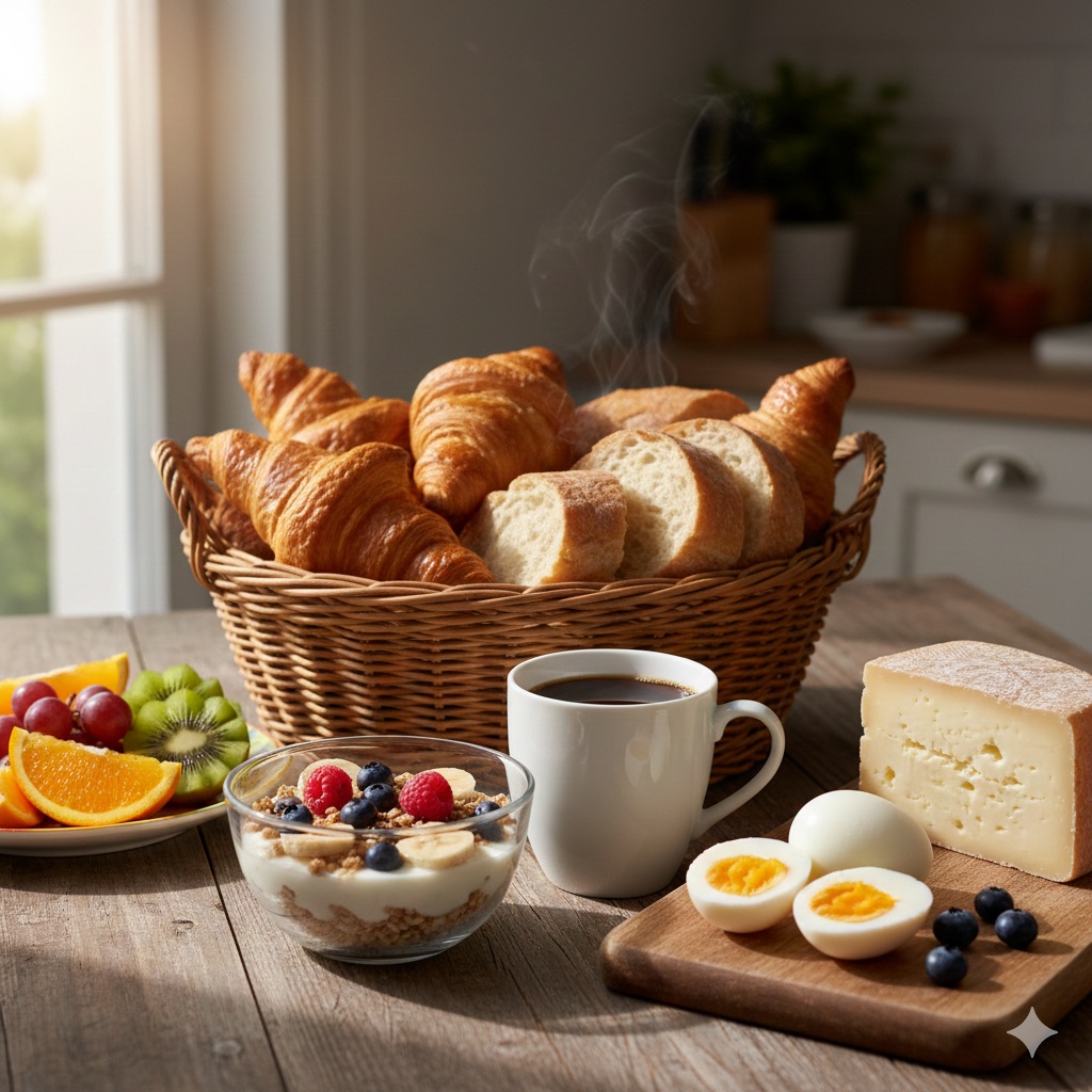 We leveren uw ontbijt op uw appartement op het gewenst uur (vanaf 8u30 - vroeger op aanvraag